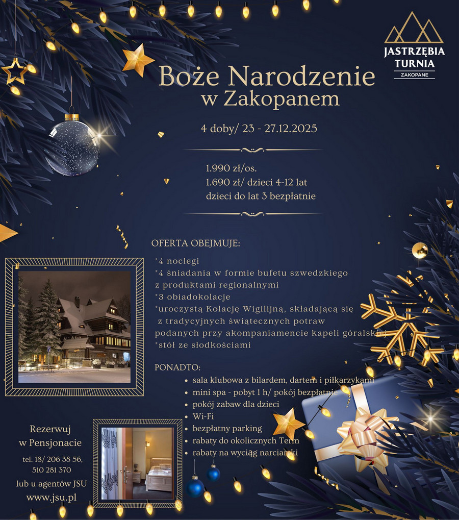 Choć do Świąt Bożego Narodzenia zostało jeszcze trochę czasu, warto już teraz pomyśleć o ich zaplanowaniu. Przygotowania z wyprzedzeniem dają przestrzeń na prawdziwe przeżywanie świąt: spotkania z bliskimi, spacery w zimowej aurze, chwilę zadumy - my zapraszamy do Pensjonatu "Jastrzębia Turnia" na święta pełne magii.